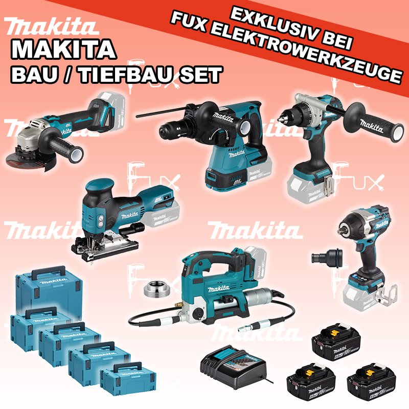 Das Ladenlokal bleibt vom 25. Dezember 2025 bis am 04. Januar 2026 geschlossen. Bestellungen und Lieferungen von Neugeräten werden trotz Ferienabwesenheit in gewohnter Fux-Manier entgegengenommen und ausgeliefert. Heute auf dieses Produkt 32% Rabatt! Zu "Bau / Tiefbau Set" von Makita Sparfux Aktionen FUX SPECIAL EXKLUSIV BEI FUX Makita Bau / Tiefbau Set 4 Bestell- und Artikelnummer: maBau / Tiefbau Set 4 DDF492Z Akku-BohrschrauberAkkuspannung 18 V Leerlaufdrehzahl 0 - 550 / 0 - 2100 min⁻¹ Drehmoment hart / weich 130 / 65 Nm Gewicht inkl. Akku 2.3 - 2.6 kgInfos DJV18ZJ Akku-StichsägeAkkuspannung 18 V Hubzahl 800 - 3500/ min Schnittleistung Holz 135 mm / Stahl 10 mm Gewicht 2.5 kgInfos DHR243ZJ Akku-BohrhammerAkkuspannung 18 V Einzelschlagstärke 2.0 J ( EPTA ) Bohrleistung in Beton 24 mm Gewicht 3.4 kgInfos DGA506ZJ Akku-WinkelschleiferAkkuspannung 18 V Drehzahl 9000 U / min Scheibendurchmesser 125 mm Gewicht 2,5 kgInfos DTW700Z Akku-SchlagschrauberAkkuspannung 18 V Anziehdrehmoment 700 Nm Werkzeugaufnahme 1/2" Gewicht inkl. Akku 2.7 kgInfos DGP180Z Akku-FettpresseAkkuspannung 18 V Maximaler Druck 690 bar Auspressgeschwindigkeit 145 / 290 ml/min Gewicht inkl. Akku 6.1 kgInfos 3 x BL 1860 B ( Li-Ion Akku )18 V 6.0 Ah ( Li-Ion Akku ) Infos DC 18 RC Schnell-Ladegerätfür Akkus 14.4 - 18 Volt ( Li-Ion Akkus )Infos Reduktions Adapter 1/2" auf 1/4" Aufnahme Max. 350 Nm Länge 45 mmInfos Adapter für Lube-Shuttle® 400GAdapter zum Umrüsten von Fettbehälter auf Lube-Shuttle®* Kartusche 400g geeignet für FP 18 LTXInfos MAKPAC Gr. 2Produktabmessung (L x B x H) 395 x 295 x 163 mm Infos MAKPAC Gr. 3Produktabmessung (L x B x H) 377 x 277 x 176 mm Infos Einsatz für diverse Akkuschrauber Einsatz für DDF343ZJ, DDF441, DDF446, DDF448, DDF451, DDF453, DDF456R, DDF458, DDF459, DDF480, DDF481, DDF482, DDF484, DDF485, DDF486, DHP441, DHP446, DHP448, DHP451, DHP456, DHP458, DHP459, DHP470, DHP480, DHP481, DHP482, DHP484, DHP485, DHP486, DLX2126TJ1, DLX3092TJInfos Einsatz für DTW1001 / DTW1002 / DTW450Einsatz für DTW1001 / DTW1002 / DTW450 Makpac Koffer Typ C (821551-8) Infos Standard-Ausrüstung In diesem Set enthalten: DDF492Z Akku-Bohrschrauber DJV18ZJ Akku-Stichsäge DHR243ZJ Akku-Bohrhammer DGA506ZJ Akku-Winkelschleifer DTW700Z Akku-Schlagschrauber DGP180Z Akku-Fettpresse 3 x BL 1860 B ( Li-Ion Akku ) DC 18 RC Schnell-Ladegerät Reduktions Adapter Adapter für Lube-Shuttle® 400G MAKPAC Gr. 2 MAKPAC Gr. 3 Einsatz für diverse Akkuschrauber Einsatz für DTW1001 / DTW1002 / DTW450 Geliefert im KofferDGP180Z Akku-Fettpresse ohne Koffer Zubehör Listenpreis CHF 2'820.00 Fuxpreis CHF 1'918.00 inkl. 8.1% MwSt, inkl vRG Versand CHF 20.00 Kein Grauimport! Produkt bestellen 1 Stück 2 Stück 3 Stück 4 Stück 5 Stück 6 Stück 7 Stück 8 Stück 9 Stück 10 Stück Option: Makita BL 1860 B ( Li-lon Akku ) für CHF 95.- statt CHF 124.-Infos Alle Angaben ohne Gewähr und solange Vorrat reicht!Wiederverkäufer werden? Produkt als PDF NEUHEITAKTION 32%