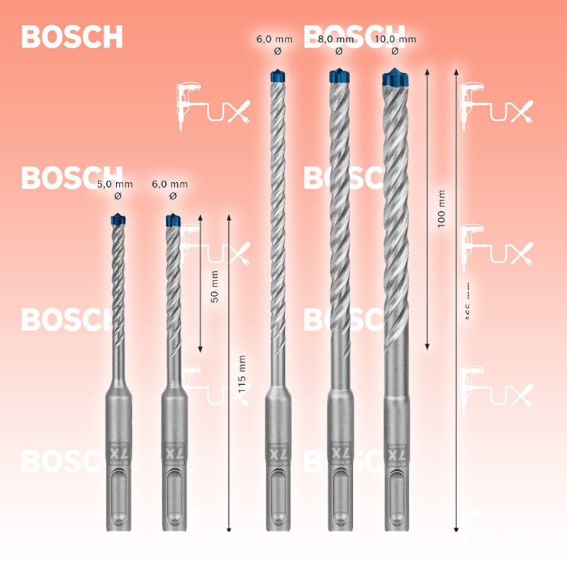 - Hält bis zu 3-mal länger als ein Bosch SDS plus-3 Bohrer